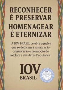 A IOV Brasil — Organização Internacional de Arte Popular, representante oficial da International Organization of Folk Art (IOV), entidade filiada à UNESCO, reconhece e celebra aqueles que se dedicam à valorização, preservação e promoção do Folclore e das Artes Populares.