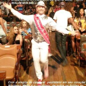 Mas é em 2019 que sua trajetória alcança um marco simbólico. Na quadra da GRES Escola de Samba Grande Rio, em cerimônia oficial da IOV Brasil, Waldemir Mello é coroado pelo presidente Milton Perácio da Grande Rio coo o Rei do Carnaval da IOV Brasil. Desde então, assume não apenas um título, mas uma responsabilidade: representar o carnaval como expressão do patrimônio cultural imaterial, como linguagem de identidade, como caminho de paz e como elo entre os povos.